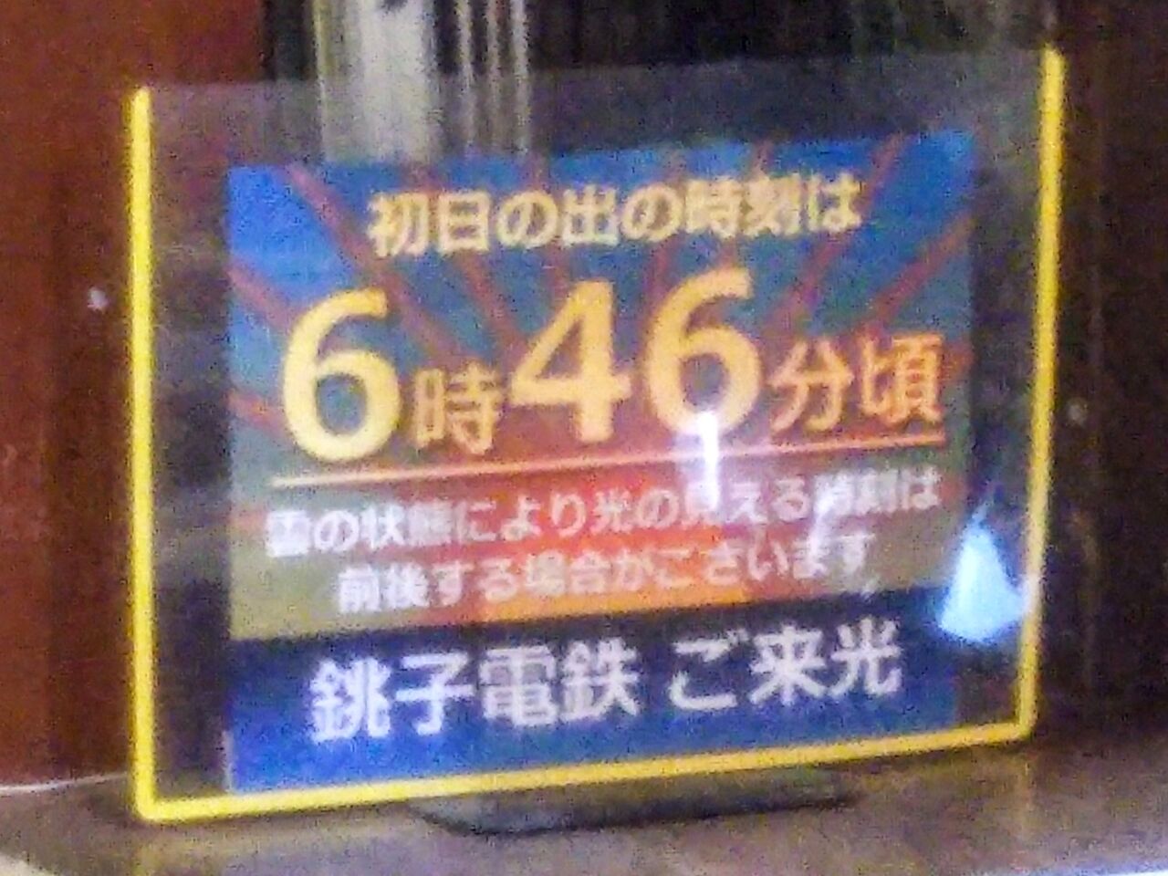 銚子電気鉄道では、元旦の初日の出鑑賞向けに、毎年、深夜時間帯に初日の出運転として銚子〜犬吠間に臨時列車を運行しています。これらの臨時列車に接続するよう、JR東日本では特急『犬吠初日の出号』などの臨時列車を運行していますが、2000形・3000形の方向幕にも『犬吠初日の出号』の表示が用意されており、初日の出運転時、実際に使用しています。