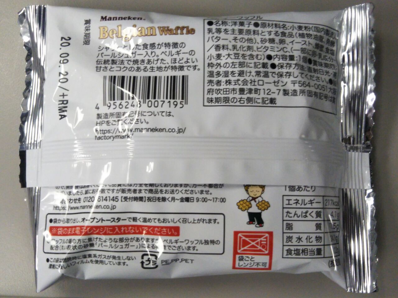 《マネケン ベルギーワッフル プレーン(2020年8月23日購入)》
