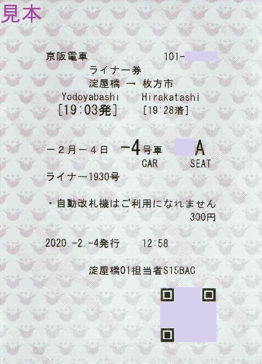 《京阪電車 ライナー券(2020年2月4日)》