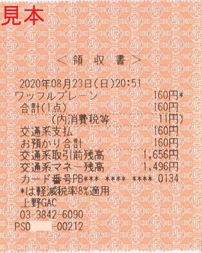《JR東日本サービスクリエーション 領収書(2020年8月23日)》