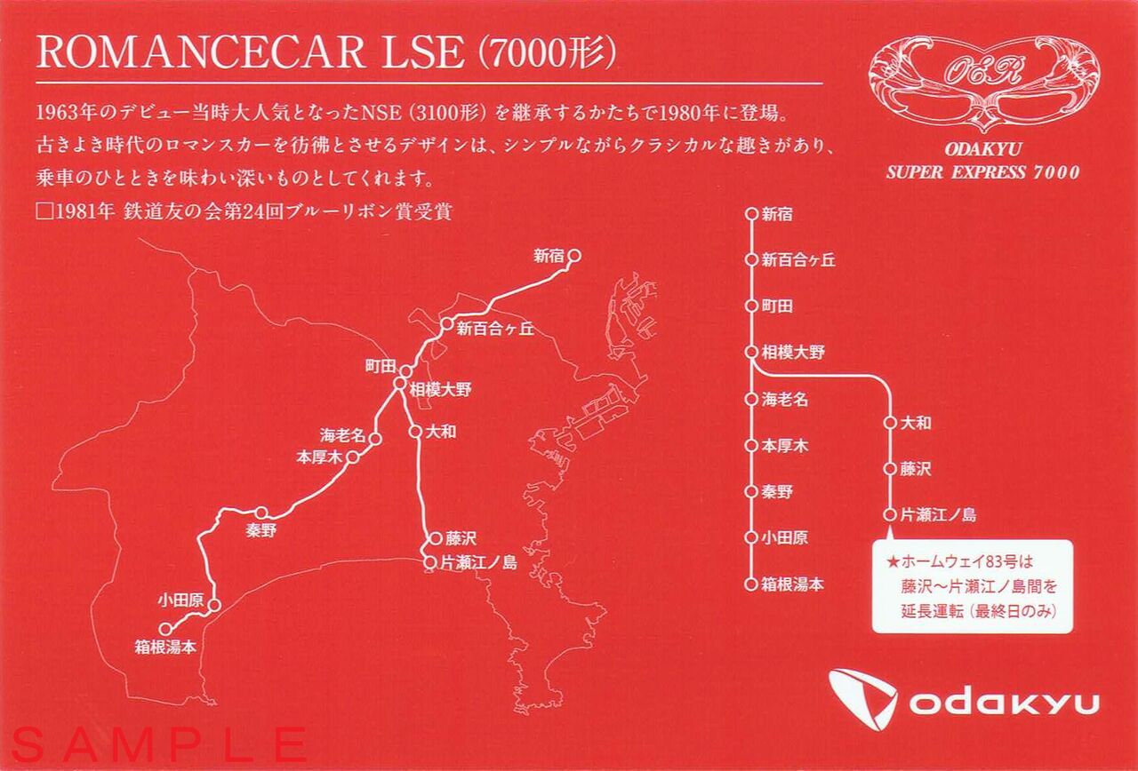 小田急電鉄の特急ロマンスカーLSE(7000形)は2018年7月10日に定期運行を終了し、同年10月の団体専用臨時列車の運行をもって引退しました。2018年6月23日からLSEの3・4・8・9号車側面にラストラン記念ロゴマークが掲出されました。定期運行最終日には、はこね23・22・41・34号とホームウェイ83号(通常では藤沢止まりを片瀬江ノ島まで延長運転)の運用に就きました。