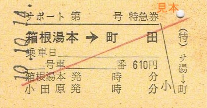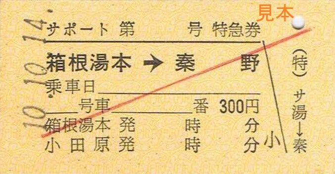 《箱根湯本駅発行 サポート第 号 特別急行券(平成10年10月14日)》