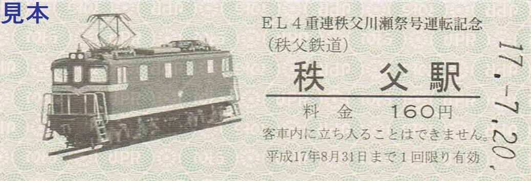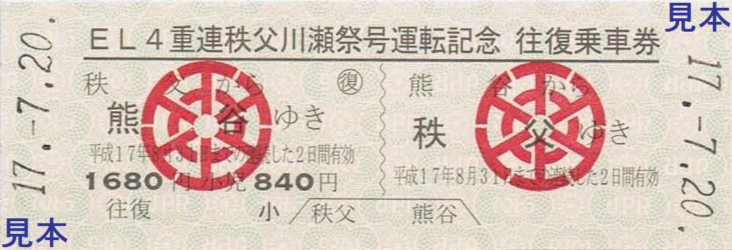 《EL4重連秩父川瀬祭号運転記念乗車券(平成17年7月20日)》