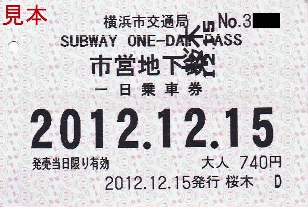 《桜木町駅 地下鉄一日乗車券(磁気券)(2012年(平成24年)12月15日使用)》