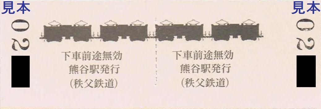 熊谷〜秩父間の往復乗車券。