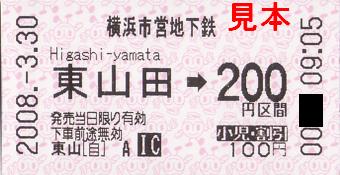 《片道乗車券・券売機券(東山田駅)(平成20年3月30日収集)》