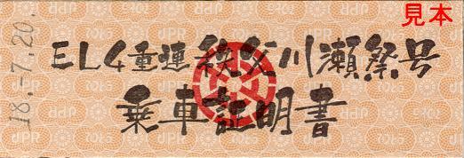 《EL4重連秩父川瀬祭号乗車証明書(平成18年7月20日)》