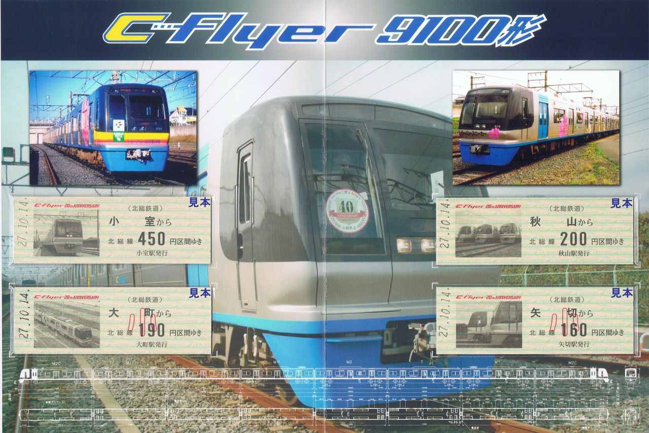 D型硬券乗車券4枚と台紙をセットにして発売。1セット1,000円で1,000セット限定。YOKOHAMAトレインフェスティバル2015で先行発売。9100形の20周年記念も兼ねており、台紙には3編成の並びや創立40周年ヘッドマーク装着時(2012年のほくそう春まつり号)等の写真を使用しています。――――――――――――――――――――――――――――――――――――――