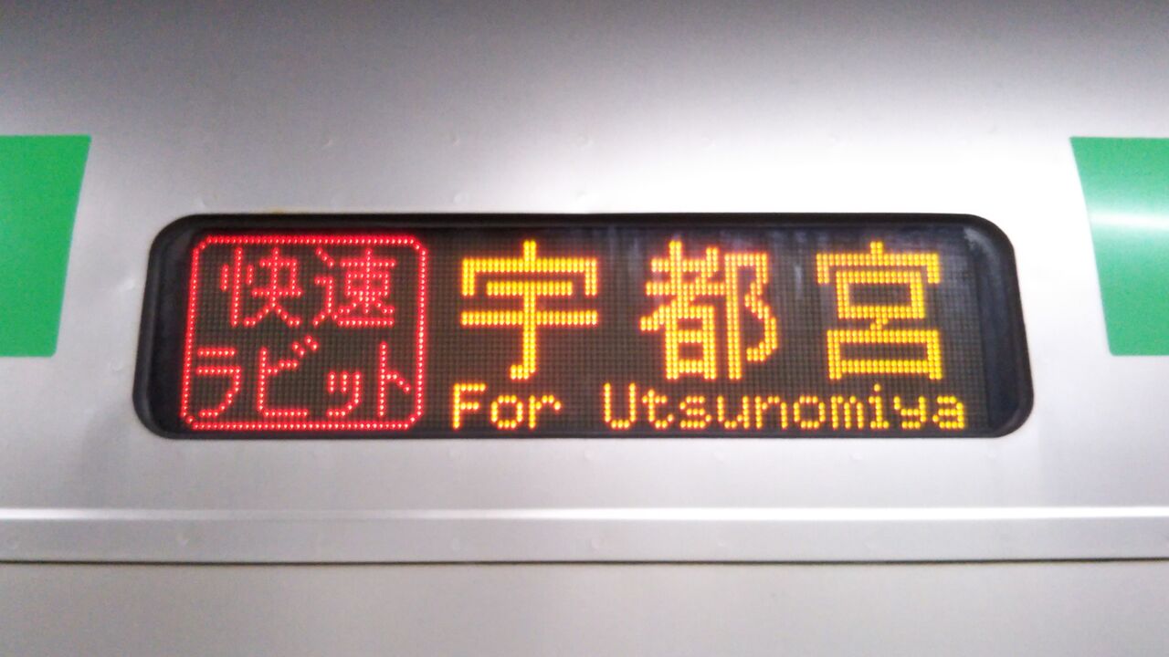 終点・宇都宮駅に到着。既に方向幕は折返しの湘南新宿ライン・横須賀線直通・快速逗子行のものに変わっていました。