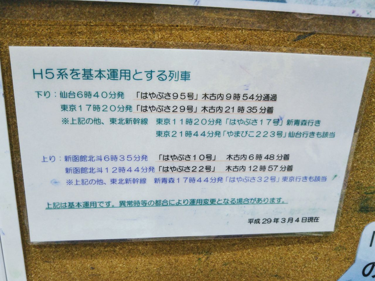 【H5系 はやぶさ号時刻(2017年3月4日ダイヤ改正時)】