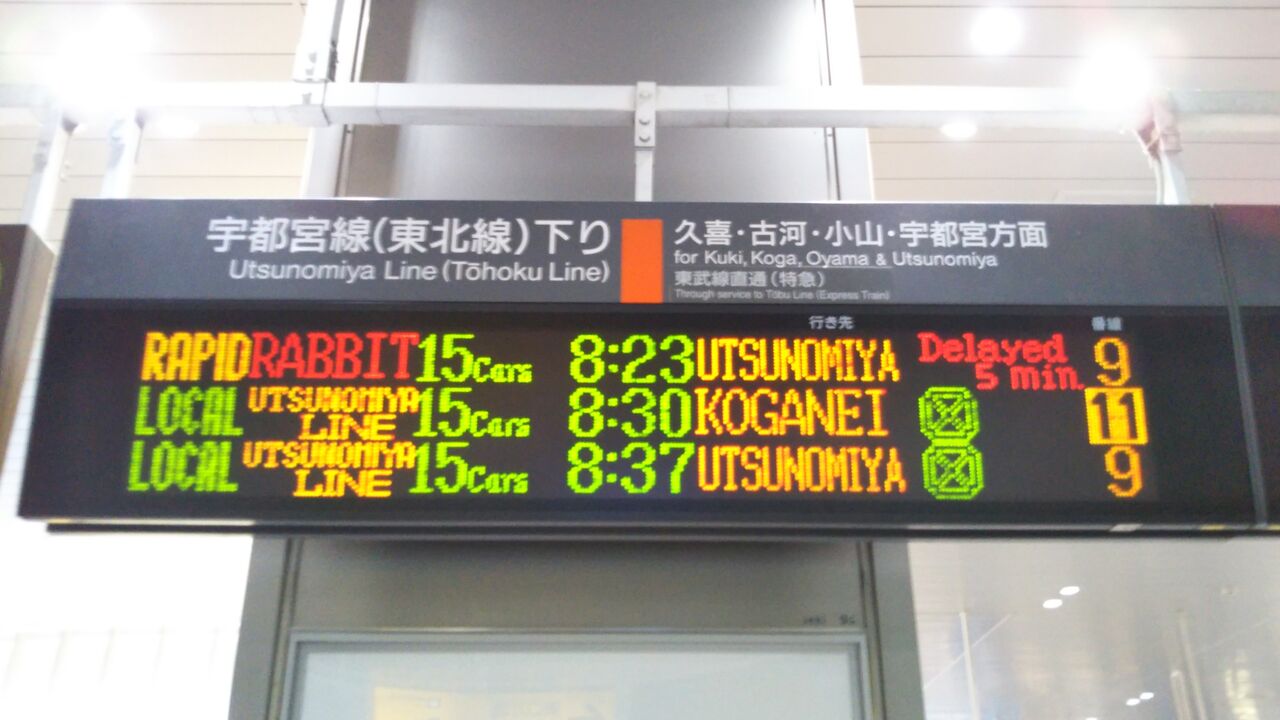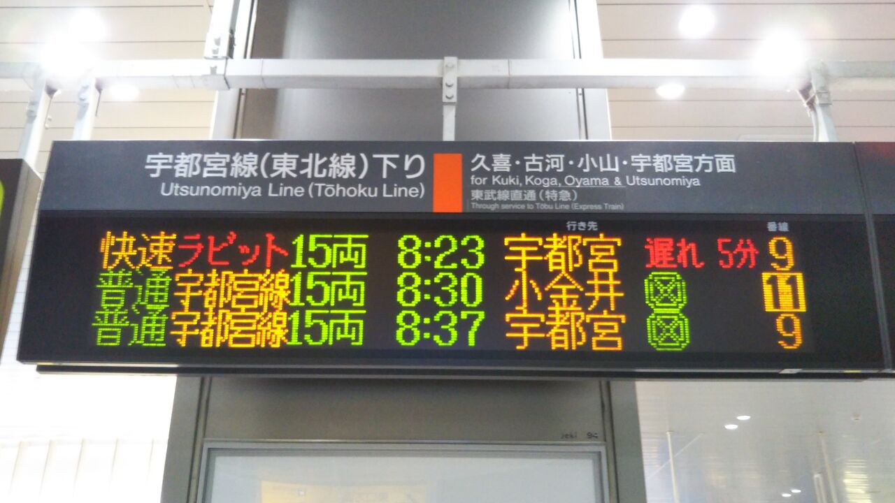 大宮駅改札階の案内表示です。この日は赤羽駅での急病人救護のため5分遅れで運行していました。