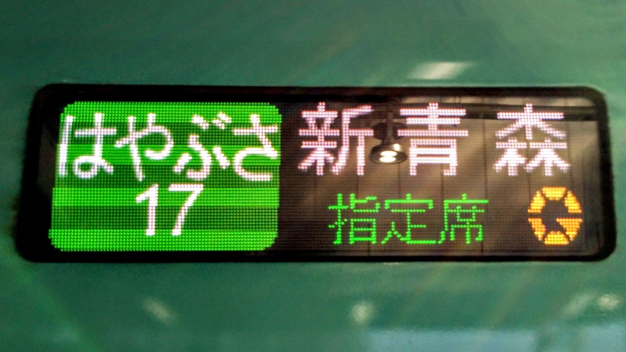 当初、新函館北斗12:44発のはやぶさ22号(H5系)を使用予定でしたが、函館からそれに接続予定だったスーパー北斗11号・札幌行に乗車しようとしたところ、函館本線八雲〜長万部間での倒木による線路支障のため運転見合わせとなりました。その次に発車予定だったはこだてライナーが先発となるため、それに接続するはやぶさ24号(E5系)への変更の手配を函館駅で、発券は新函館北斗駅で行って下さりました。本来の特急券がJR東日本びゅう旅行商品として購入していたもので、その券にステープラ留めした状態で渡され、有人改札にて入出場しました。新青森駅では使用済印を押していただきました。――――――――――――――――――――――――――――――――――――――