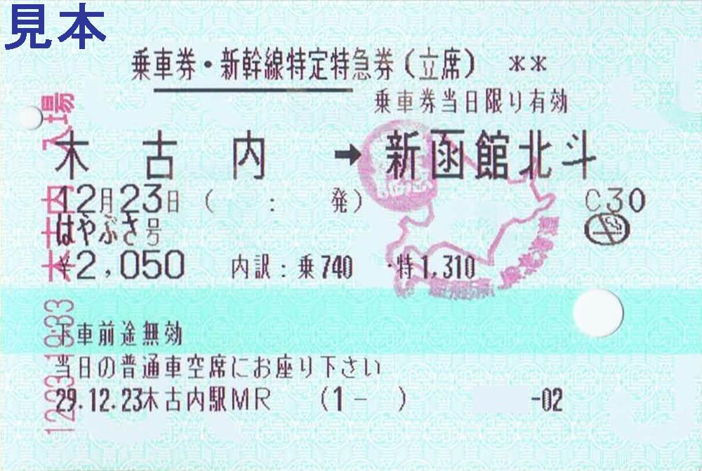 《木古内駅MR発行 乗車券・新幹線特定特急券(立席) はやぶさ号(2017年12月23日)》