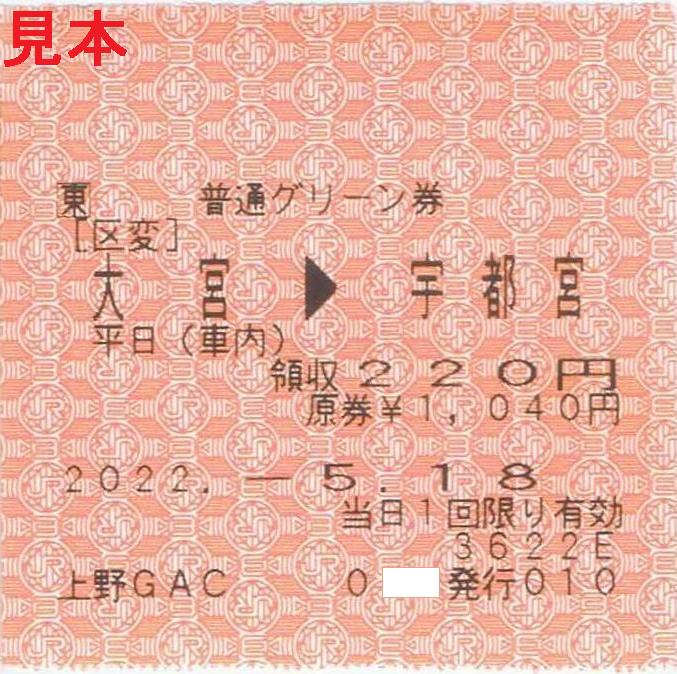 原券は大宮駅で購入した50kmまでの磁気グリーン券。列車番号の印字された券が欲しかったため、車内で51km以上に変更。――――――――――――――――――――――――――――――――――――――
