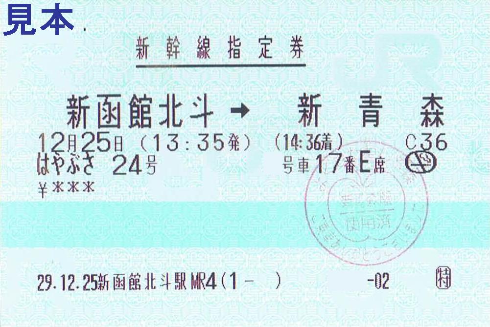 《新函館北斗駅MR4発行 新幹線指定券 はやぶさ24号(2017年12月25日)》