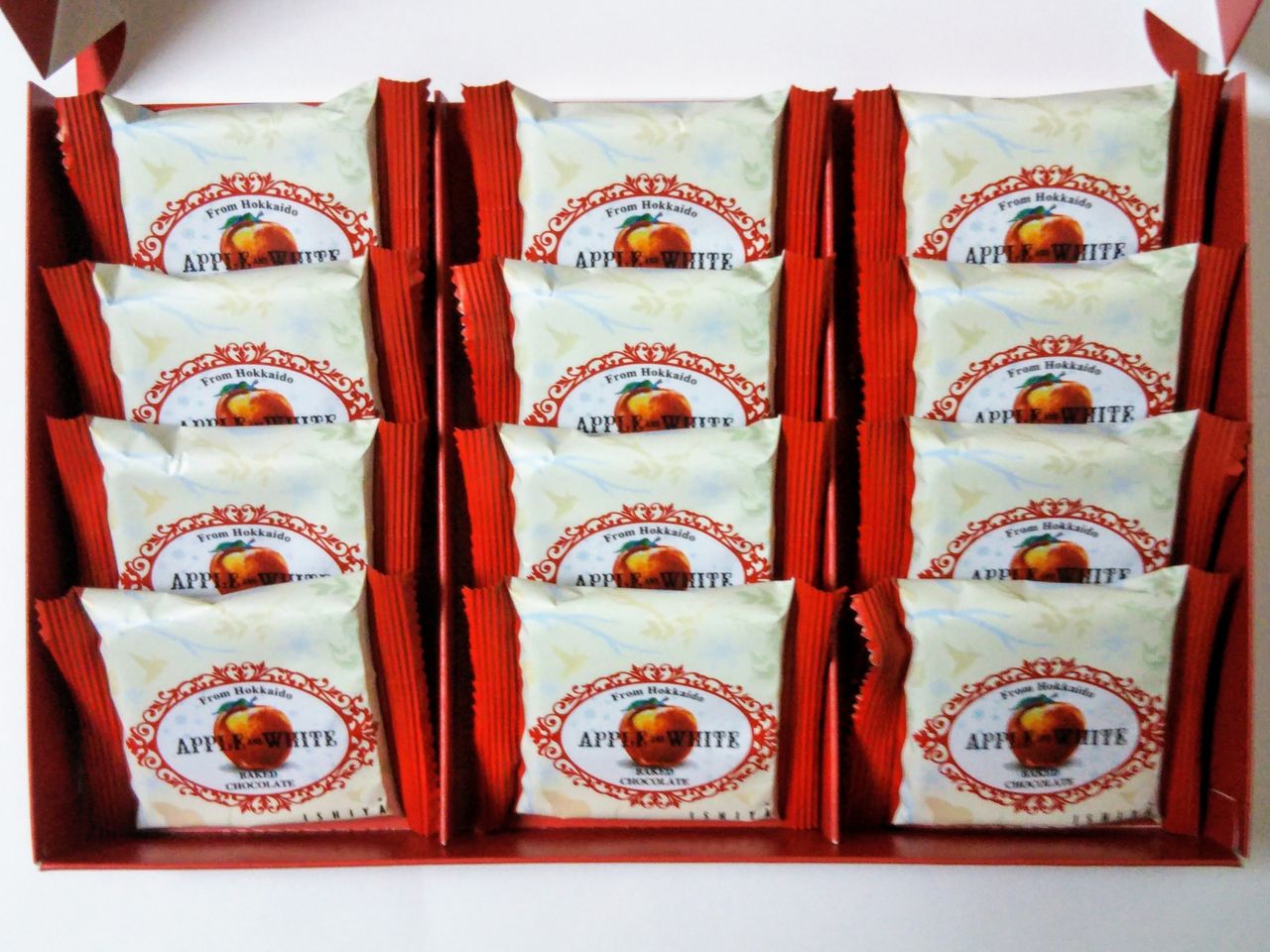 北海道新幹線開業にあわせ、北海道キヨスクと白い恋人の石屋製菓が共同開発した北海道キヨスク限定のお菓子。なお、北海道キヨスク売店以外にNREの東北・北海道新幹線車内販売でも取り扱っています。北海道七飯町産と青森県産りんごのセミドライをのせた白い焼きチョコレートで12個入り。北海道キヨスク駅売店では税込972円。NRE車内販売では税込980円。