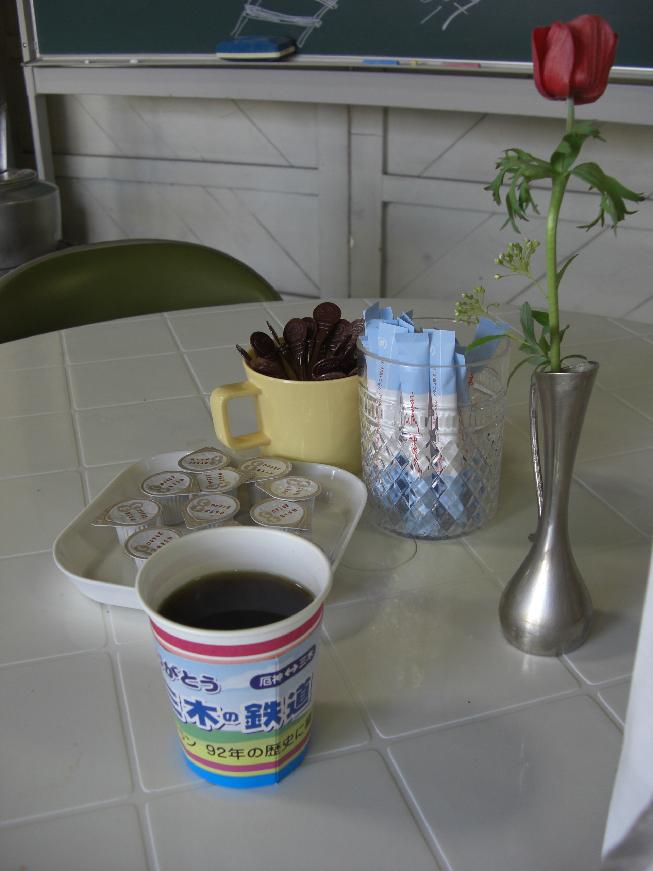 廃止が具体化した頃から発売開始したものだと思います。三木駅窓口で購入。写真左は掛紙。車両ではなく車紋入りなのがシブめ。箱に入っており、その中にせんべいと写真左下の紙が入っており、『ありがとうございます』と書かれています。こういう演出は個人的に大好きです。《オープン・カフェ ホットコーヒー(平成20年3月1日購入)》