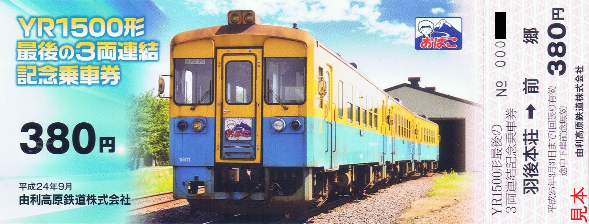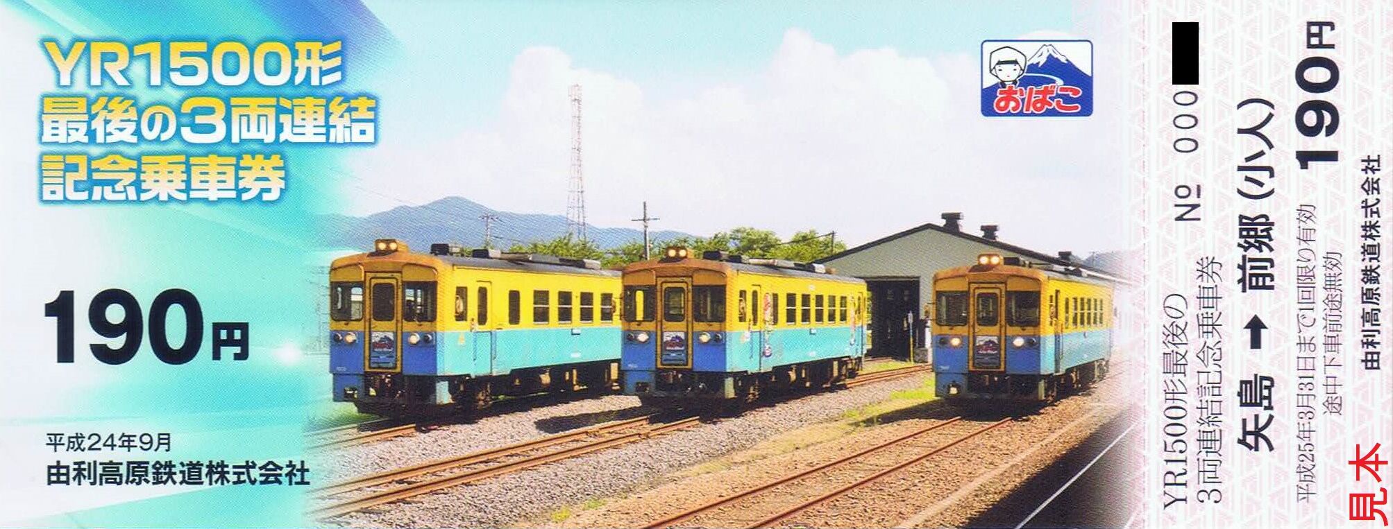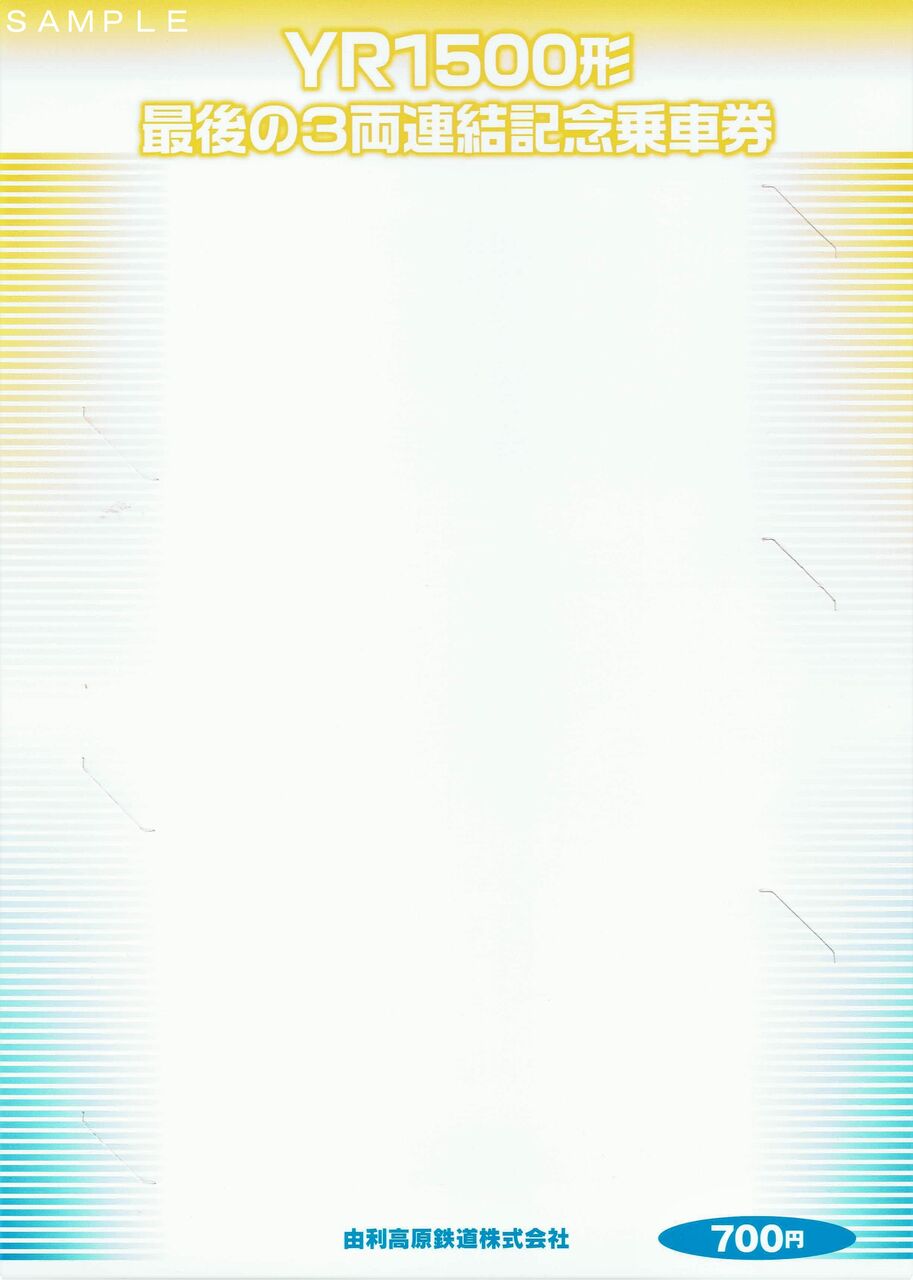 《YR1500形最後の3両連結記念乗車券(平成24年9月発売)》
