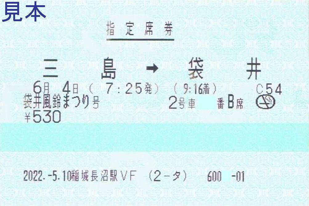 《稲城長沼駅VF発行 袋井風鈴まつり号・指定席券(2022年6月4日分)》