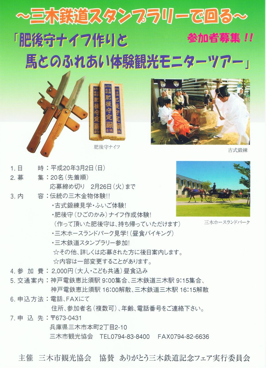《肥後守ナイフ作りと馬とのふれあい体験観光モニターツアー》