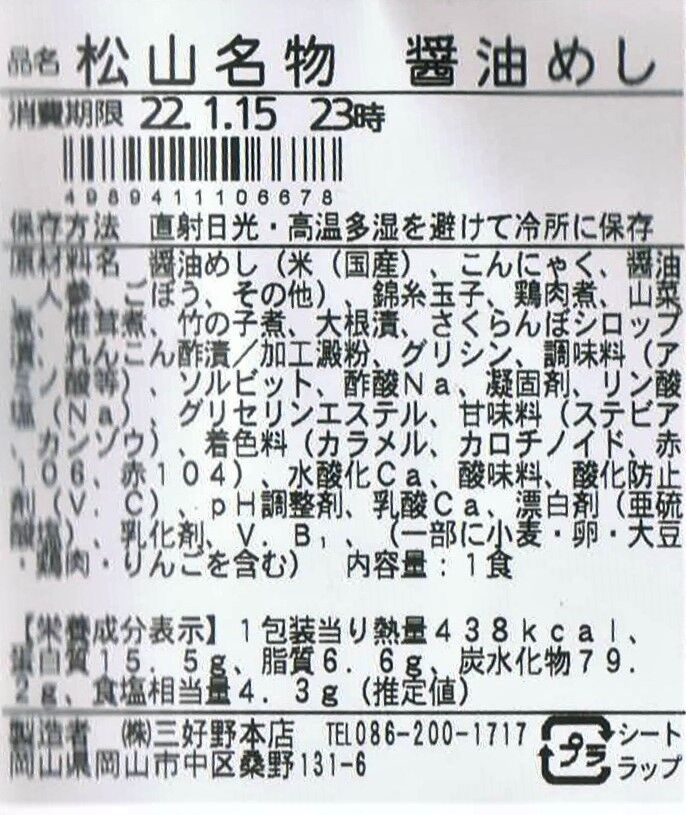 《松山駅弁 三好野本店 醤油めし(2022(令和4)年1月15日購入)》