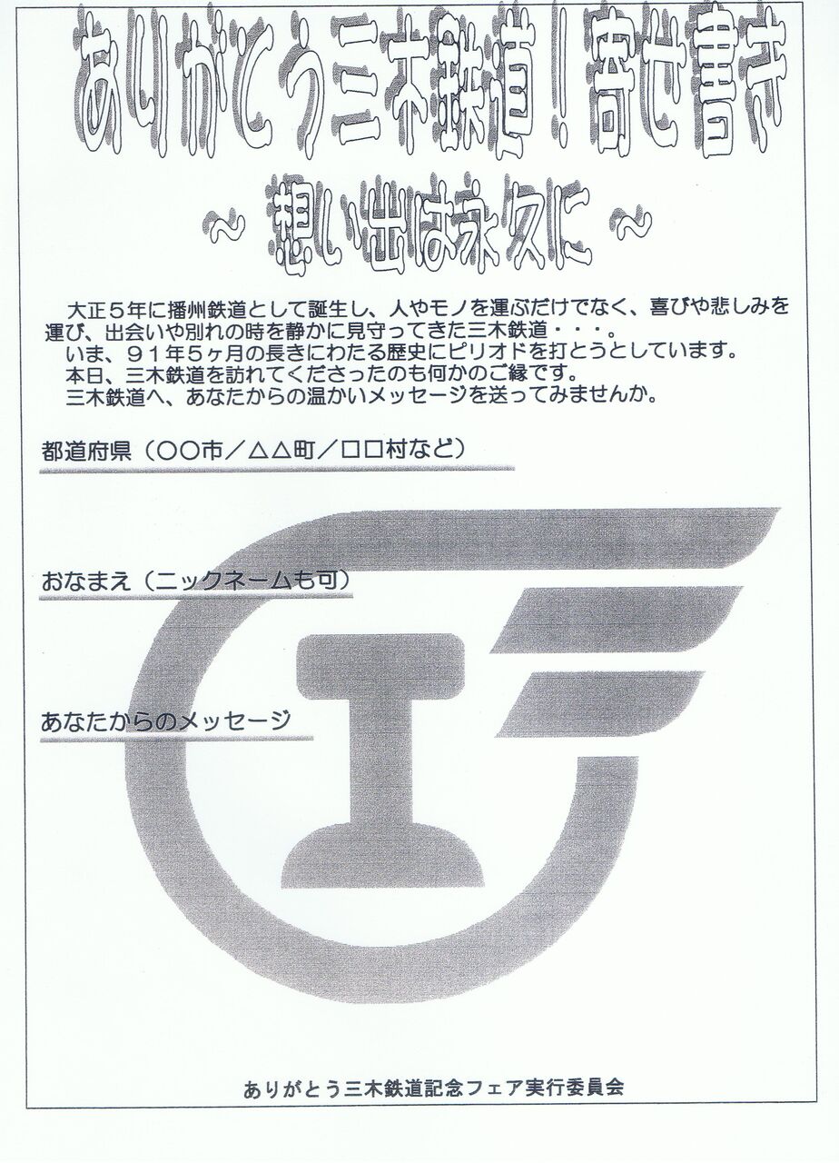 《ありがとう三木鉄道!寄せ書き〜想いでは永久に〜》