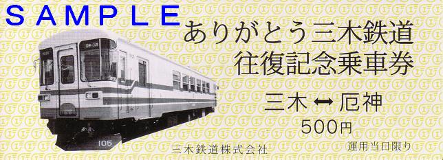 《ありがとう三木鉄道往復記念乗車券(平成20年3月)》