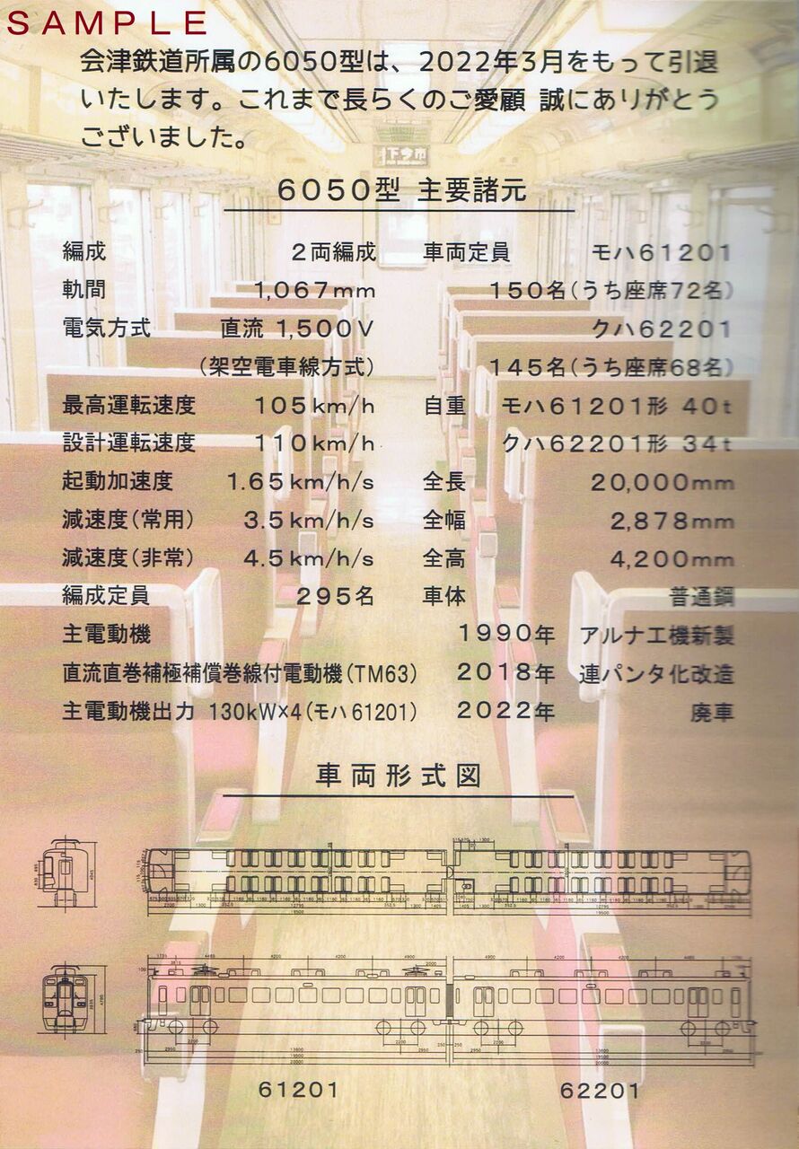 本記事は会津鉄道が同車引退を記念して発売した記念乗車券、記念入場券の商品名にあわせて、タイトルを6050型としています。