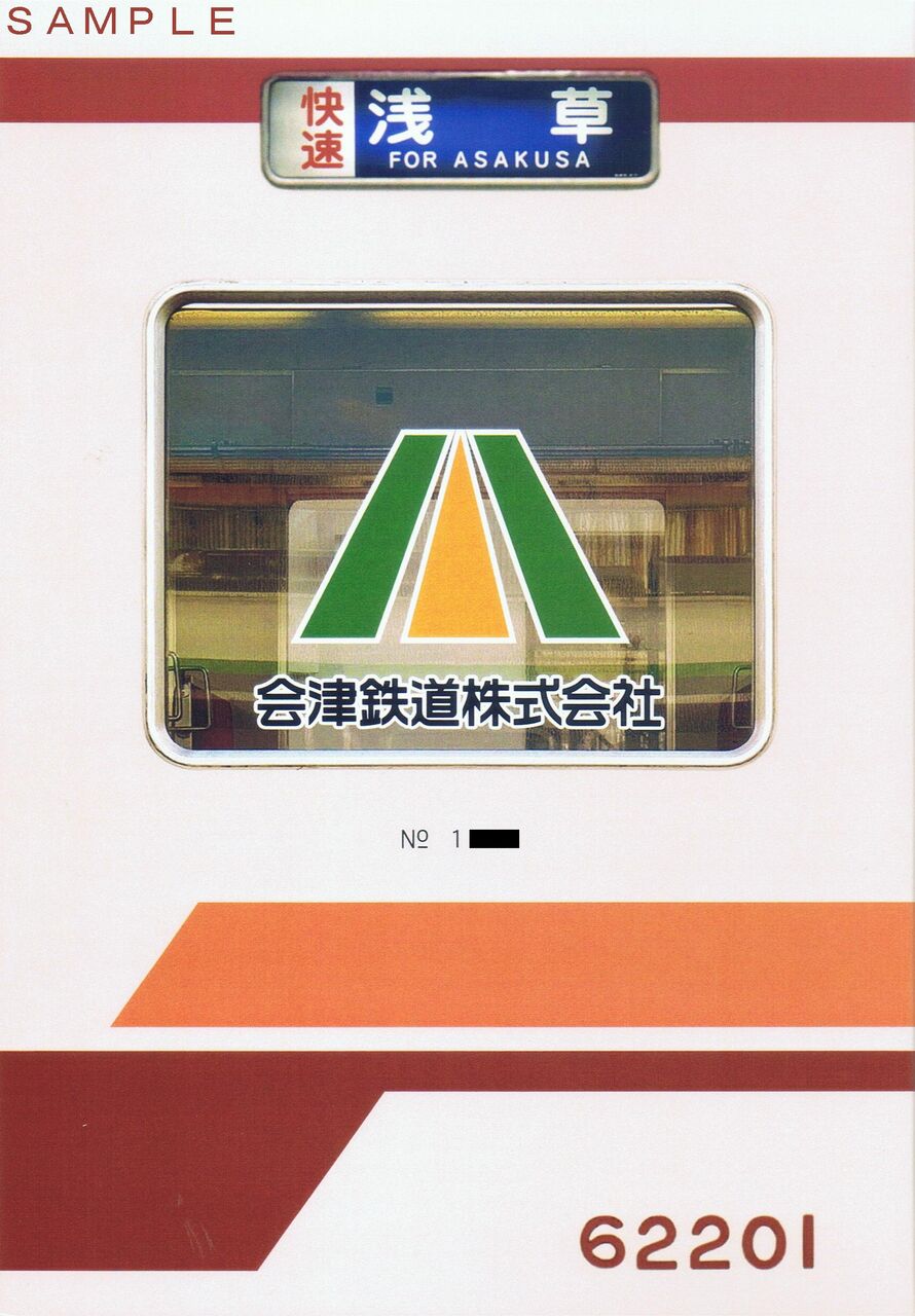 写真は台紙外側の表面と裏面で6050系の車体色を再現。裏面には区間快速・会津田島行の方向幕もデザイン。