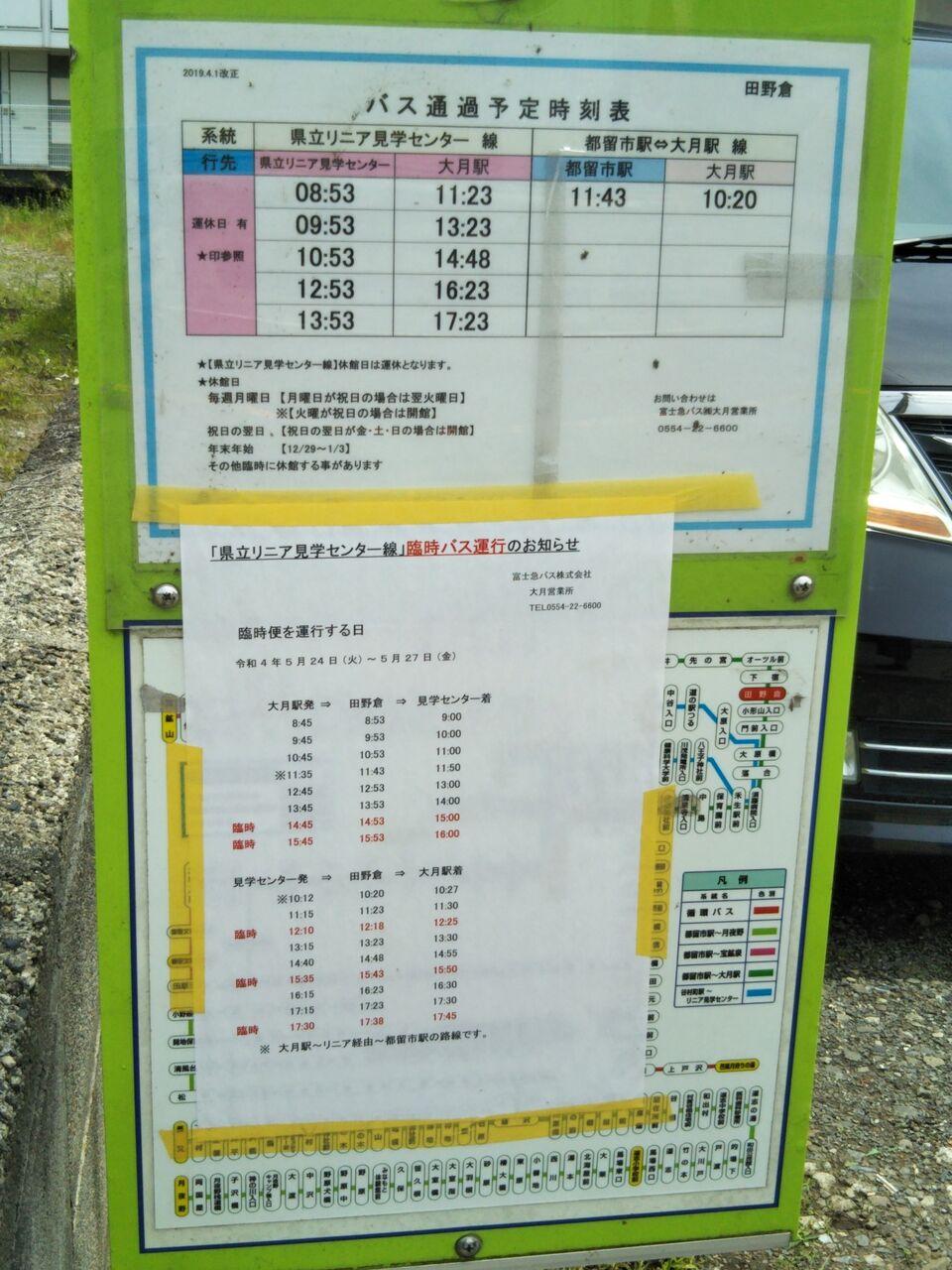 田野倉駅(県立リニア見学センター方面)のバス停と時刻表。