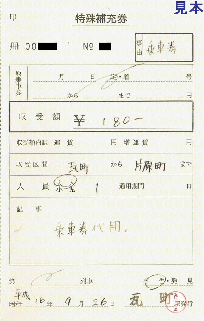 実際に使用した460円券です。《特殊補充券》
