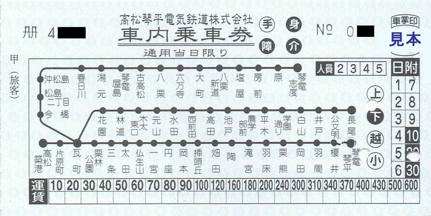 写真は高松琴平電気鉄道の駅で発売されている常備券で瓦町駅で購入したもの。JR-S・青色地紋。当時は大人用1,700円(現在は1,900円)です。