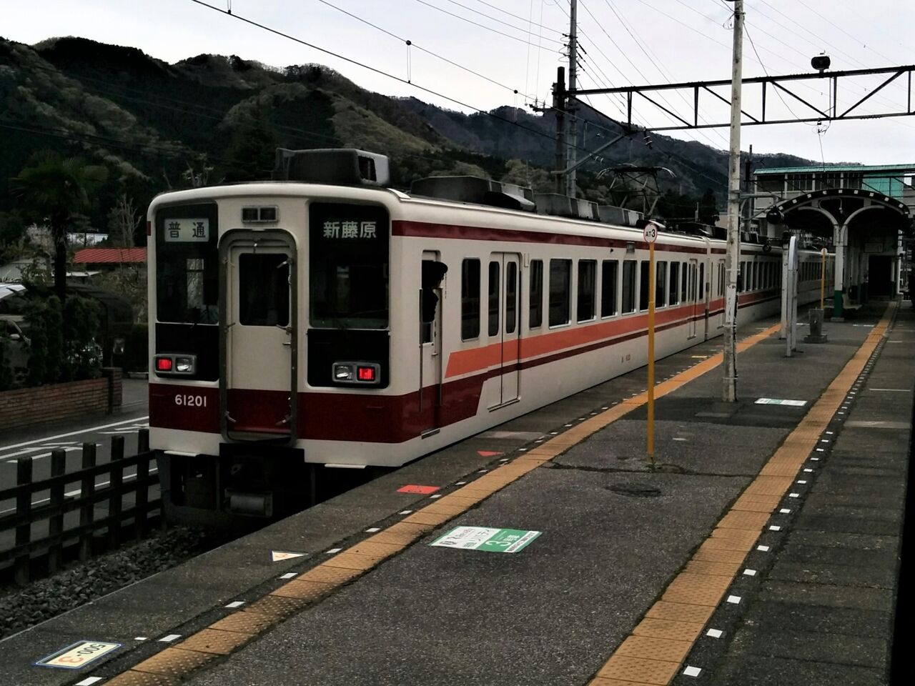 普通列車新藤原行。野岩鉄道や自社線内まで行かず、東武鉄道線内で完結する4両編成の列車で最後尾は61201号車。