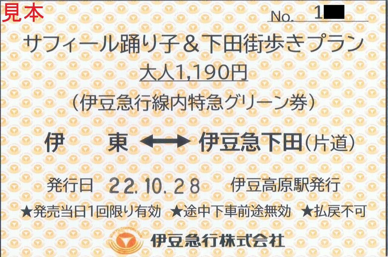 ¡¡°ËƦµÞ¹Ô¤È²¼ÅĻԴѸ÷¶¨²ñ¤¬¶¦Æ±¤ÇÈÎÇ䤷¤Æ¤¤¤ë¥µ¥Õ¥£¡¼¥ëÍÙ¤ê»Ò¤ò»ÈÍѤ·¤¿¥Þ¥¤¥¯¥í¥Ä¡¼¥ê¥º¥àÍÑ¤ÎÆÃµÞ·ôÅù¤Ç¤¹¡£°ËƦËþµÊ¥Õ¥ê¡¼¤¤Ã¤×¤È°ËƦ¹â¸¶¡Á°ËƦµÞ²¼ÅÄ´Ö¤ÎÊÒÆ»Ê¬¤ÎÆÃµÞÎÁ¶â¡¦¥°¥ê¡¼¥óÎÁ¶â¡¢²¼ÅÄ»ÔÆâ¤Î´Ñ¸÷»ÜÀßÅù¤ÇÍøÍѤǤ¤ë³¹Ê⤥¯¡¼¥Ý¥ó·ô(Âç¿Í2,000±ßʬ¡¢ ¾®¿Í1,000±ßʬ)¤Î¥»¥Ã¥È¤Ç¥°¥ê¡¼¥ó¼ÖÍøÍѤÏÂç¿Í3,090±ß¡¢¾®¿Í1,940±ß¡£¥×¥ì¥ß¥¢¥à¥°¥ê¡¼¥óÍøÍѤÏÂç¿Í3,910±ß¡¢¾®¿Í2,760±ß¤Ç¤¹¡£½ÐȯÆü¤Î2±Ä¶ÈÆüÁ°¤Þ¤Ç¤ËÅÅÏÃͽÌó¤·¡¢ÅöÆü¤Î»ØÄꤵ¤ì¤¿»þ´ÖÆâ¤Ë°ËƦ¹â¸¶±Ø¹½Æâ¤Î°ËƦ¤Ý¤¿STATION °ËƦ¹â¸¶¤Ë¤Æ¼õÉÕ¡£¸½¶â¤Ë¤Æ»Ùʧ¤¤¤Þ¤¹¡£º£²ó¤ÏÂç¿ÍÍѤòÉ×ÉØ¤Ç2¥¯¥é¥¹¤Ëʬ¤±¤ÆÍøÍѤ·¤Þ¤·¤¿¡£