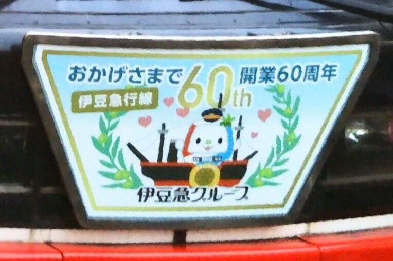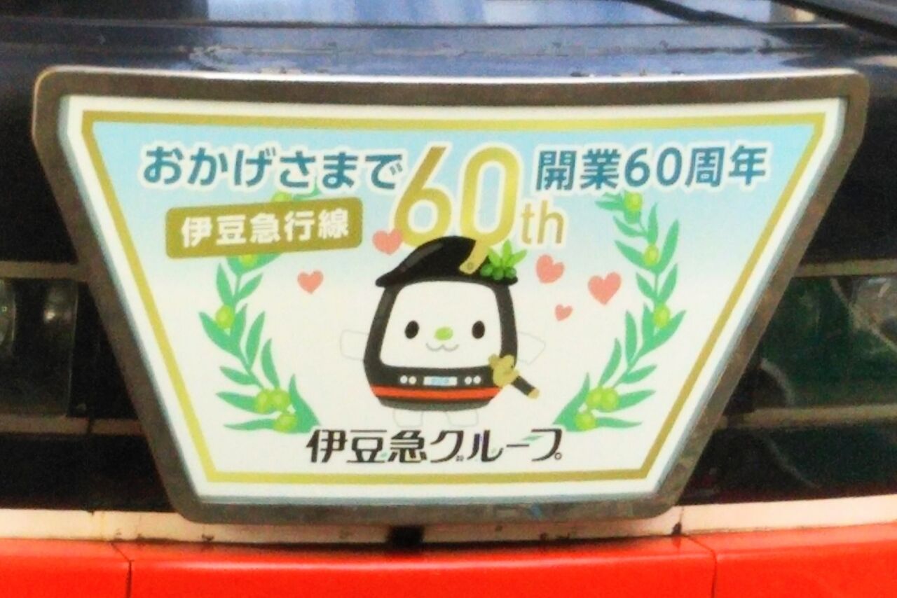 普通列車熱海行(5656M)となるリゾート21黒船電車と特急サフィール踊り子2号。黒船電車には伊豆急行線開業60周年記念ヘッドマークが装着されています。デザインは熱海側と異なります。伊豆高原駅までは『サフィール踊り子&下田街歩きプラン』でサフィール踊り子2号を利用しました。