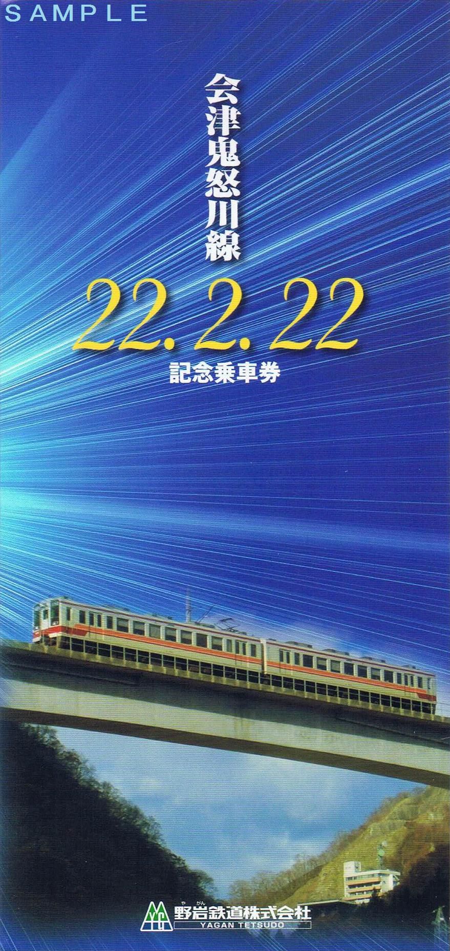 会津高原駅、上三依塩原駅、中三依駅の駅名改称記念。A型硬券乗車券3枚+入場券3枚+台紙のセットで発売。《会津鬼怒川線22.2.22記念乗車券》
