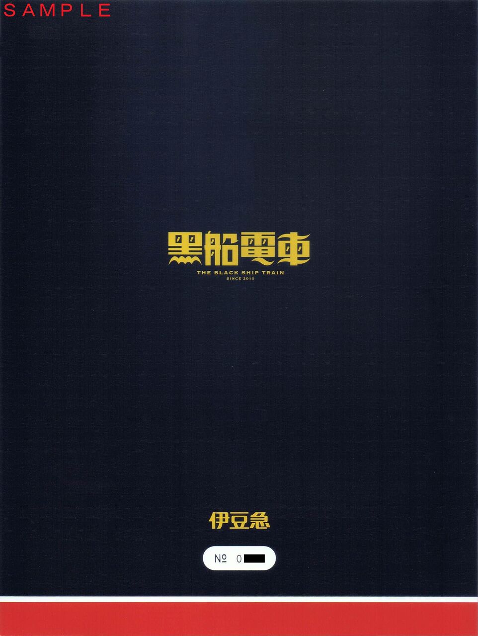 黒船電車デザインのB5サイズ台紙(写真左は表面、写真右は裏面)と伊東駅を除く全駅のA型硬券入場券をセットにした商品です。