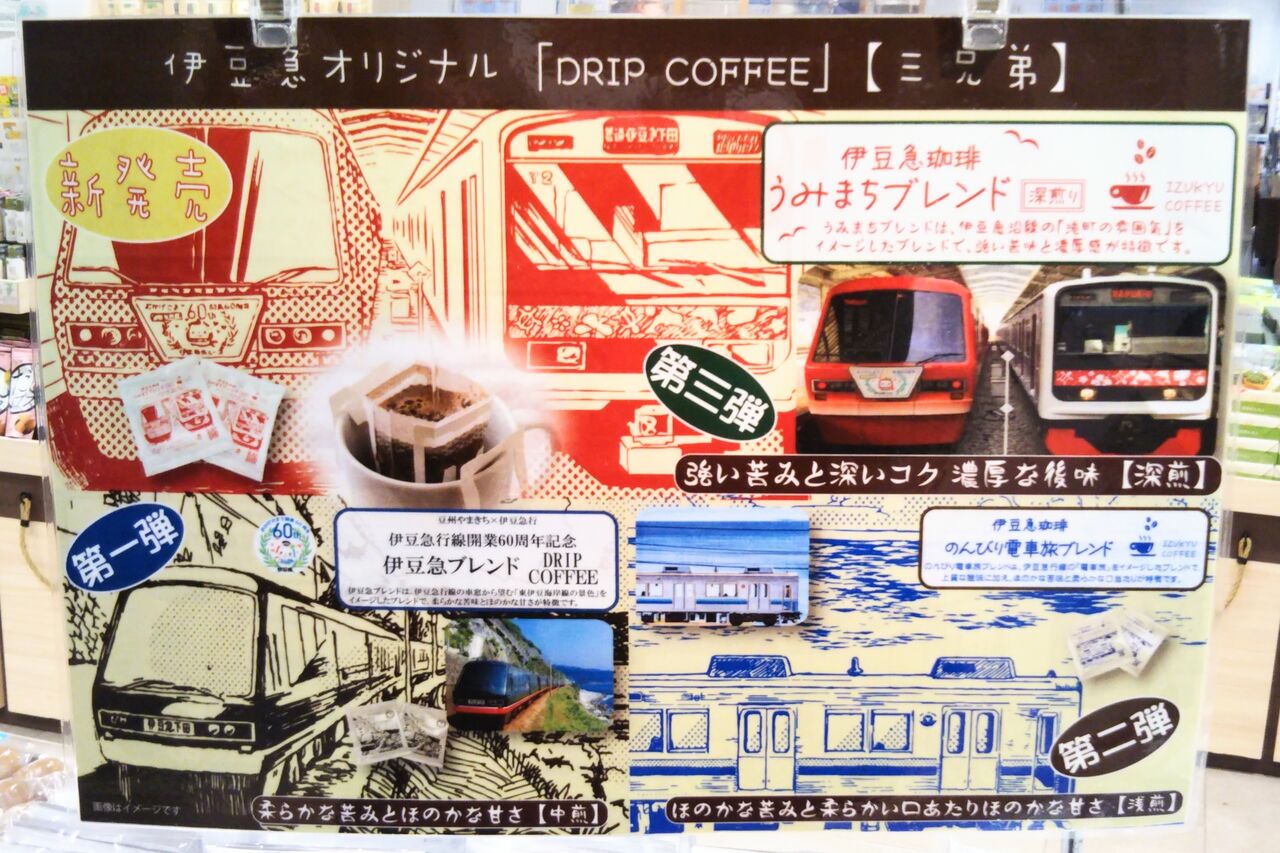 熱海駅の駅ビル『ラスカ』には伊豆急物産の『豆州やまきち ラスカ熱海店』があります。先述のドリップコーヒーを含む、全種類を販売しています。写真は同店のポスター。