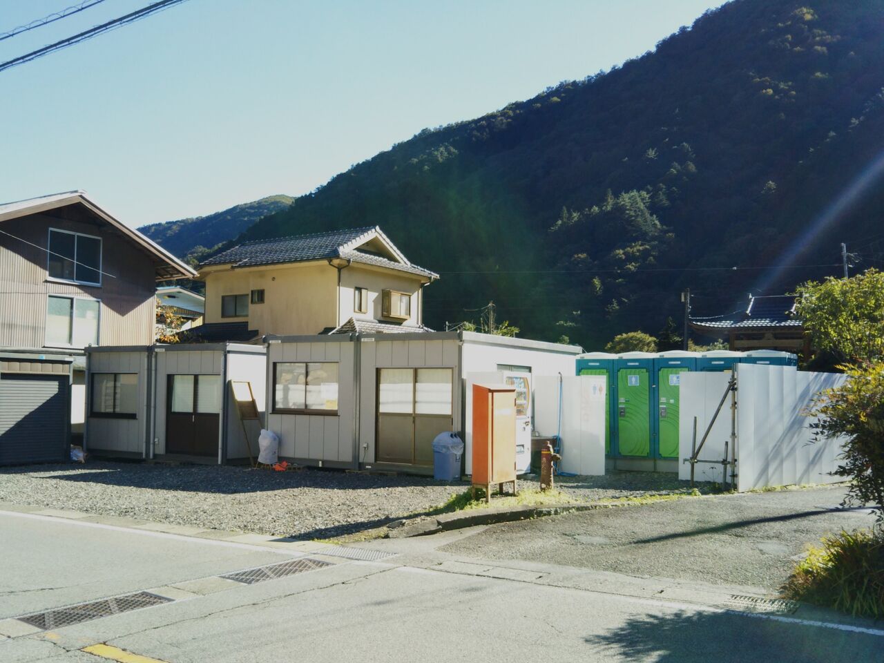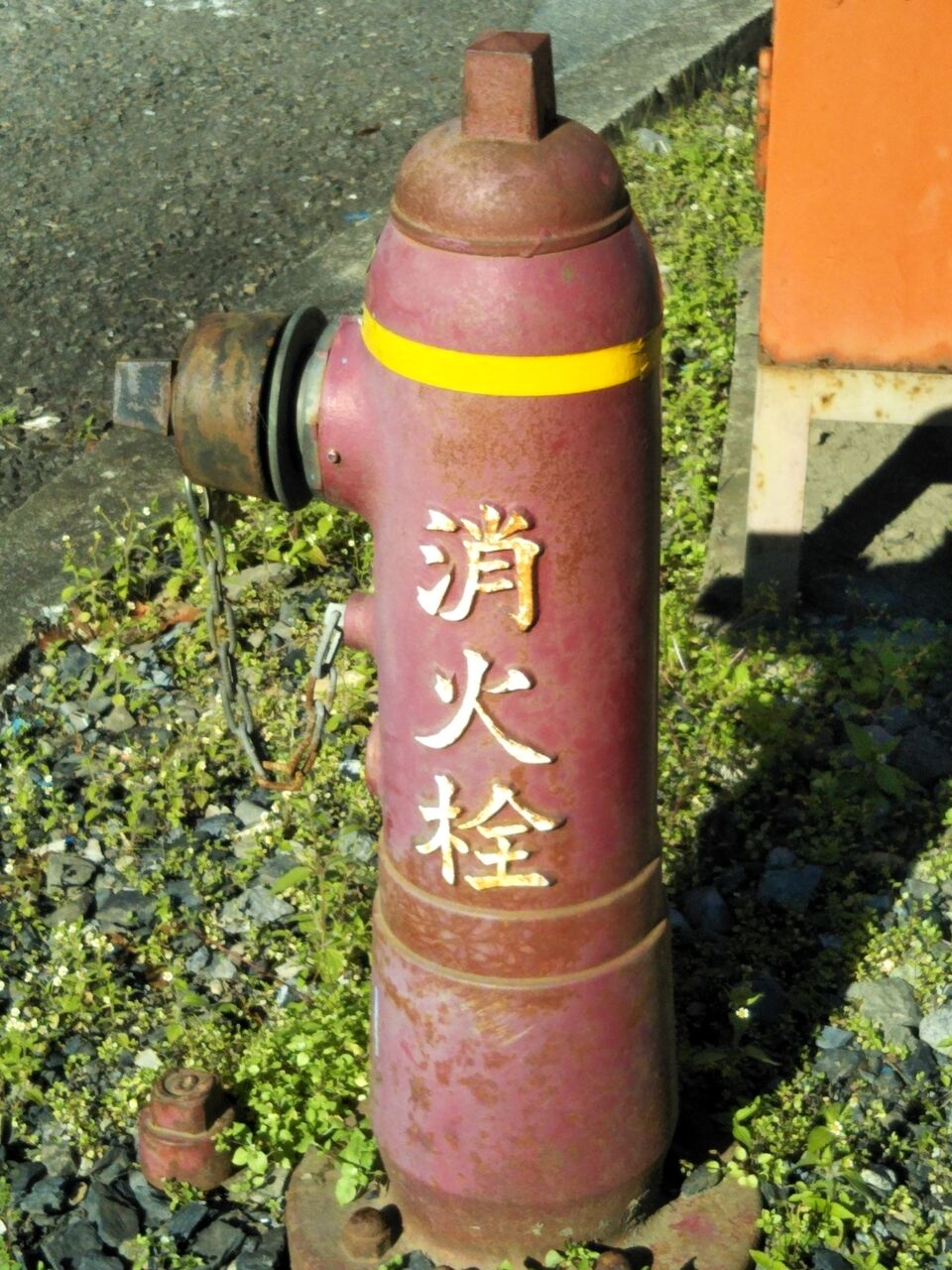 新庁舎建設工事現場の向かい側にはバス利用者向けと思われる仮設のトイレが設置されていました。その敷地内にはレトロな消火栓がありました。