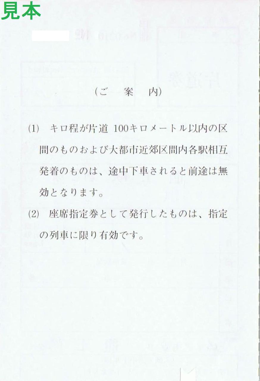 両駅とも裏面のご案内(2)の『座席指定券』が『急行券』に変わっています。