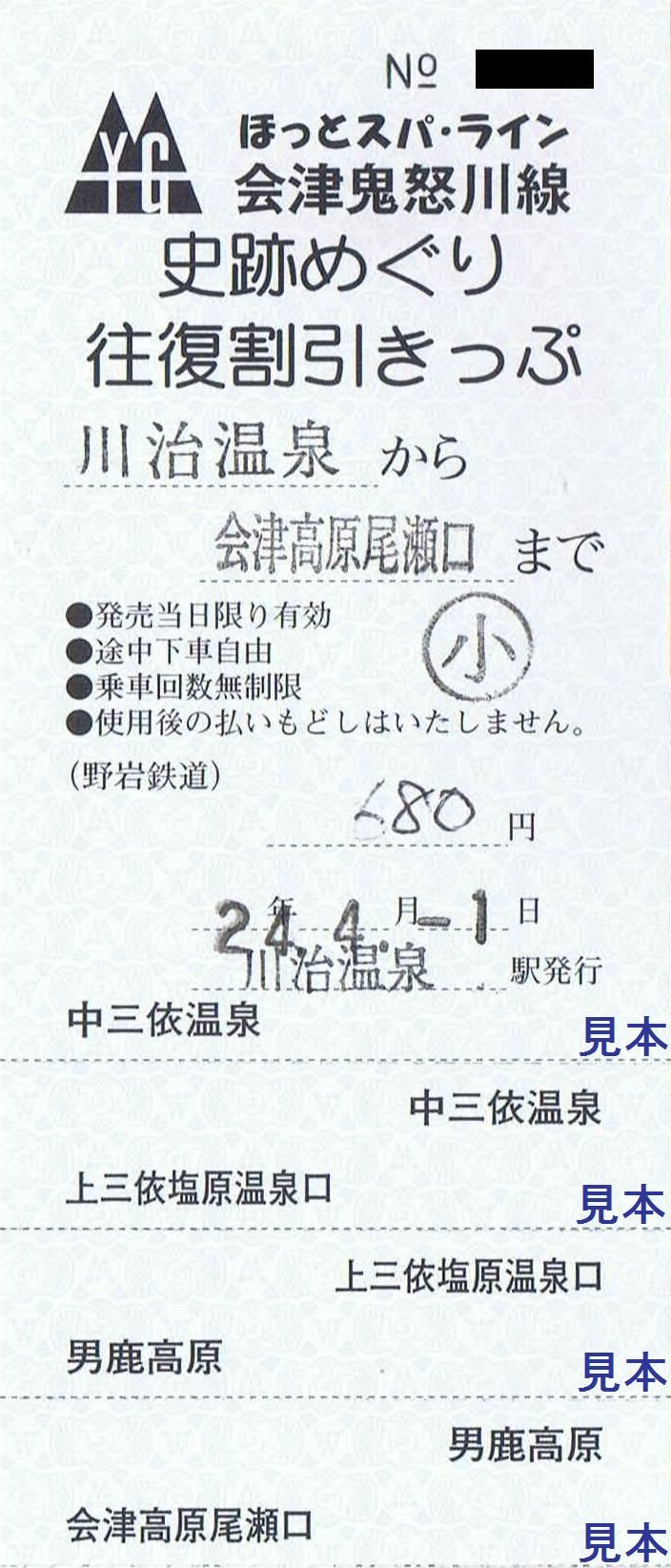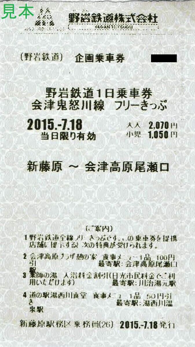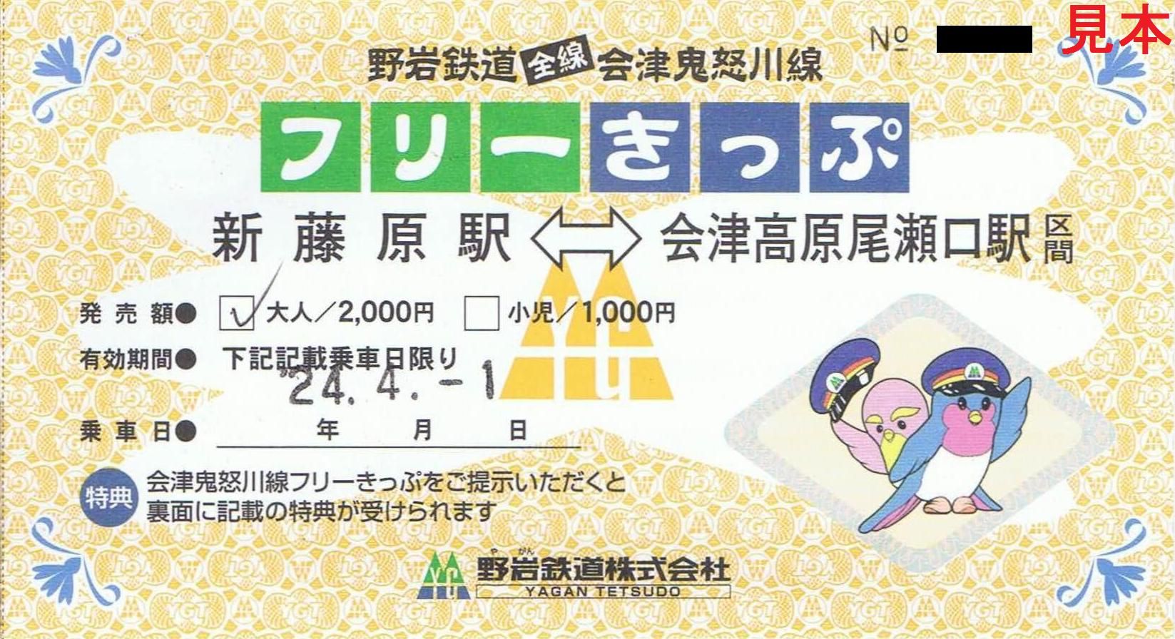 〔野岩鉄道会津鬼怒川線全線フリーきっぷ〕