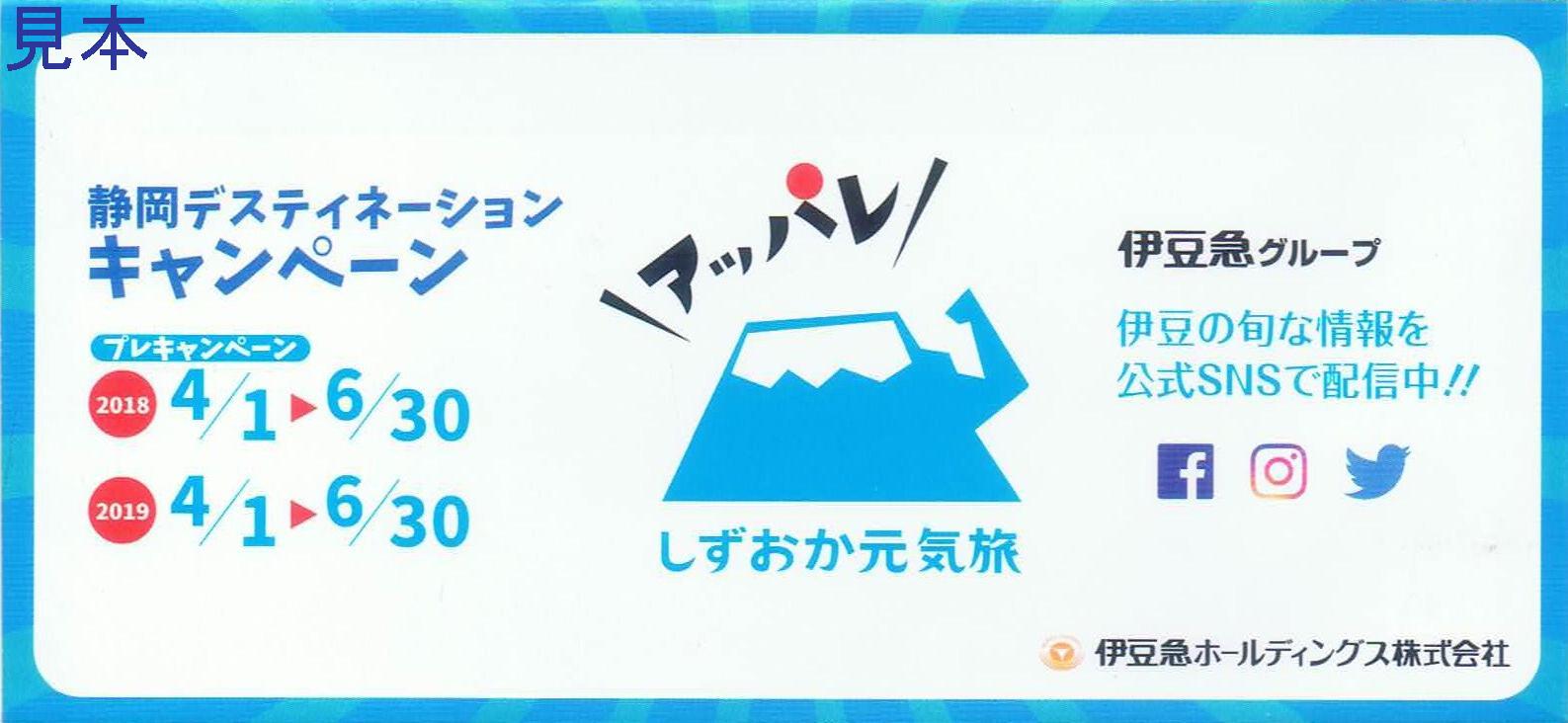 訪問当時に伊豆急下田駅で収集したものと思われます。写真左は表面。右は裏面で2018年および2019年の静岡デスティネーションキャンペーン(静岡DC)のロゴとプレキャンペーンの実施期間が記載されています。なお、黒船電車は2019年の静岡DCと2020年の同アフターキャンペーンにおける特別企画として、同車使用の普通列車(熱海〜伊東〜伊豆急下田)にロイヤルボックスの連結を行いました(特別料金は不要)。