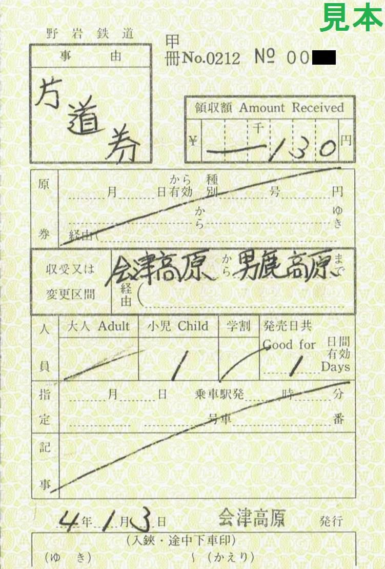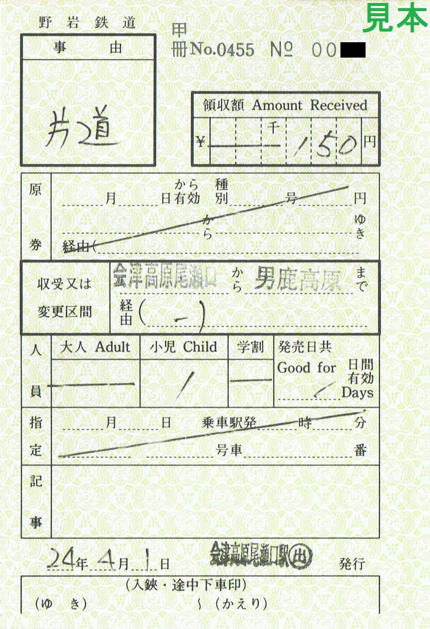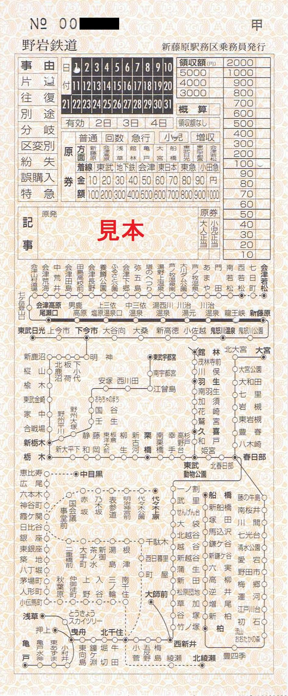 野岩鉄道有人駅と野岩鉄道所属の車掌が担当する列車内で発売。社章やイラスト、柄がたくさん入っていますが地紋が鮮明で良い感じです。