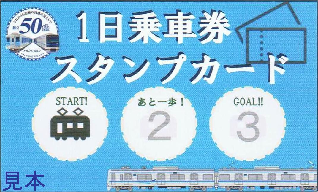 北総鉄道の創立50周年を記念して期間限定で発売された北総線1日乗車券の秋版。京成高砂駅定期券発売所分は手売り。その他の北総線各駅分は機械発券となっており、スタンプを3つ集めるとプレゼントが貰えるスタンプカードと記念台紙が付きます。