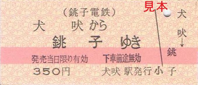 セット販売された記念乗車券以外に単品で発売されたピンクニュージンジャー号関連の乗車券。同年5月3日に銚子電気鉄道ツイッターにて発売中とツイートされたB型硬券で犬吠から銚子ゆきの350円。