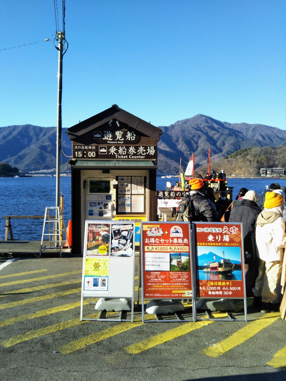 なお、乗船券自体はC型くらいのサイズの食券タイプのもので、近くにある富士急行〜河口湖〜富士山パノラマロープウェイの様な(券売機発券ですが)写真入り記念券様式ではありませんので、御船印が同航路で一番オススメの乗船記念商品です。