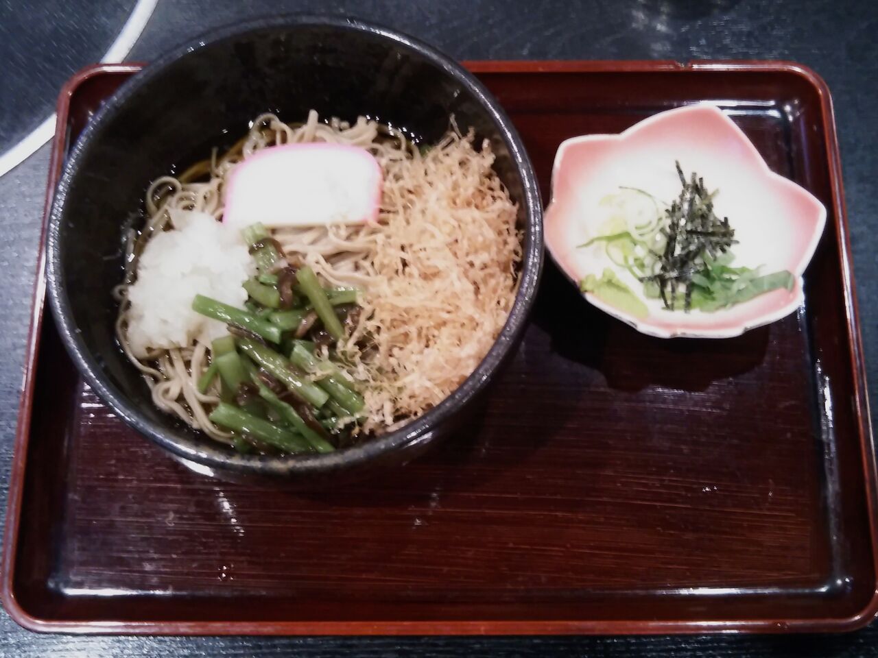 7年ぶりの訪問です。冷し山菜そばをいただきました。税込935円(高尾山冬そばキャンペーンクーポン利用で税込835円)。味付けは濃いめ。たっぷり載っているかつおぶしが良いアクセントに。