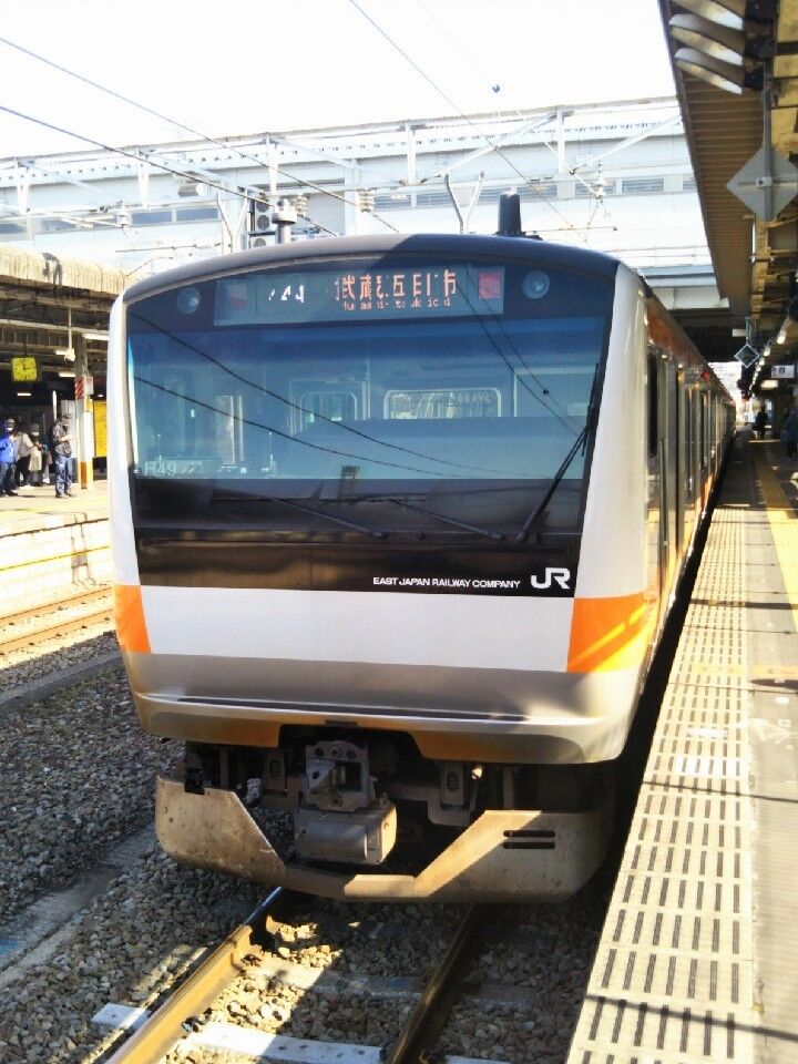 今回は福生市多摩川堤防での桜鑑賞目的での訪問。五日市線には拝島→熊川、秋川→拝島間で乗車。途中で西東京バスの拝01系統も利用し、効率的に廻れました。帰りは車内からの桜鑑賞。〔拝島駅〕