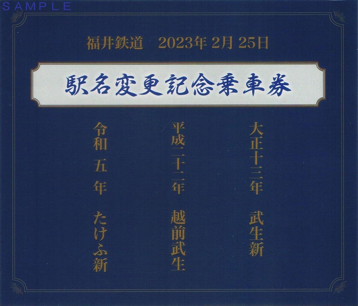 ¡¡ËÌΦ¿·´´Àþ¡Ø±ÛÁ°¤¿¤±¤Õ±Ø¡ÙÀßÃÖ¤Ëȼ¤¤¡¢Ê¡ÉðÀþ¡Ø±ÛÁ°ÉðÀ¸±Ø¡Ù¤ò¡Ø¤¿¤±¤Õ¿·±Ø¡Ù¤Ë²þ¾Î¤¹¤ë¤³¤È¤òµÇ°¤·¤ÆÈ¯Ç䤵¤ì¤¿µÇ°¾è¼Ö·ô¤Ç1¥»¥Ã¥È1,000±ß¡£Âæ»æ¤ÈB·¿¹Å·ô¾è¼Ö·ô3Ë祻¥Ã¥È¤Ç¤¹¡£