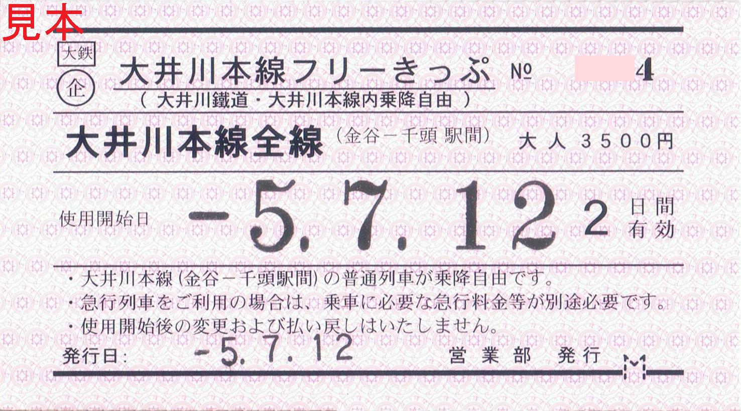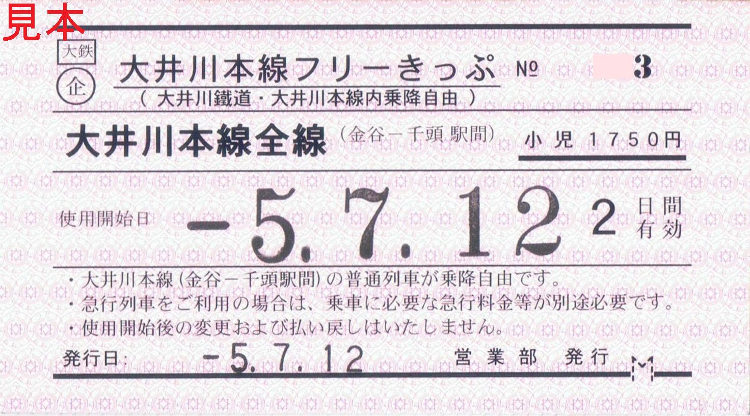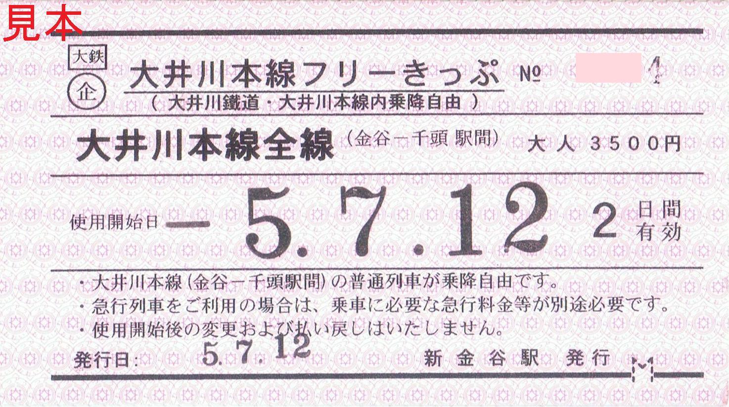 《大井川本線フリーきっぷ(2023年(令和5年)7月12日収集)》